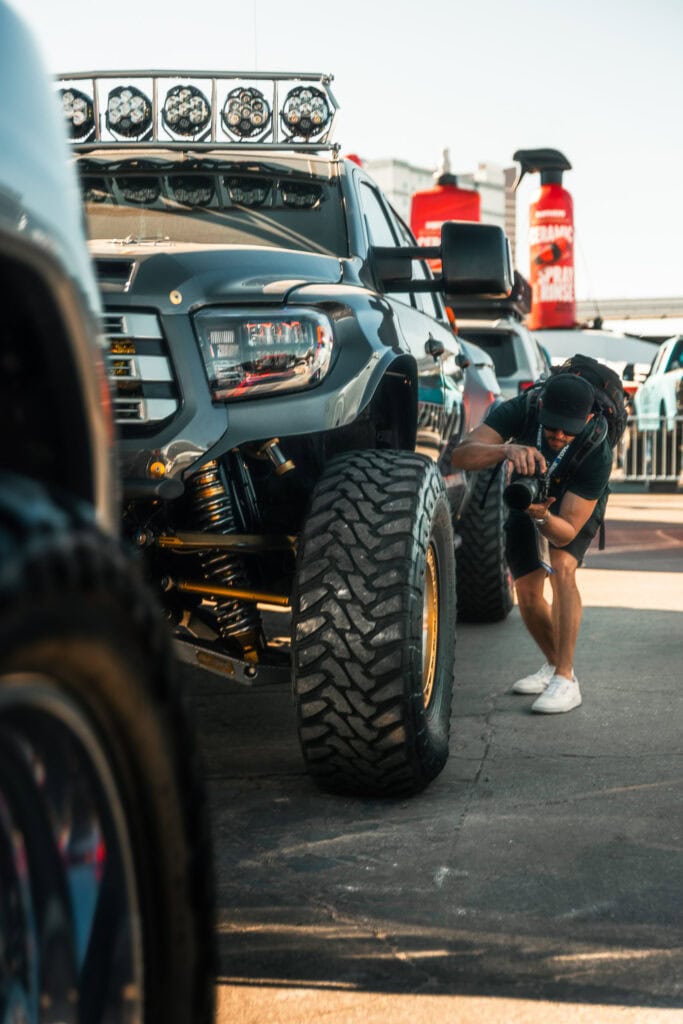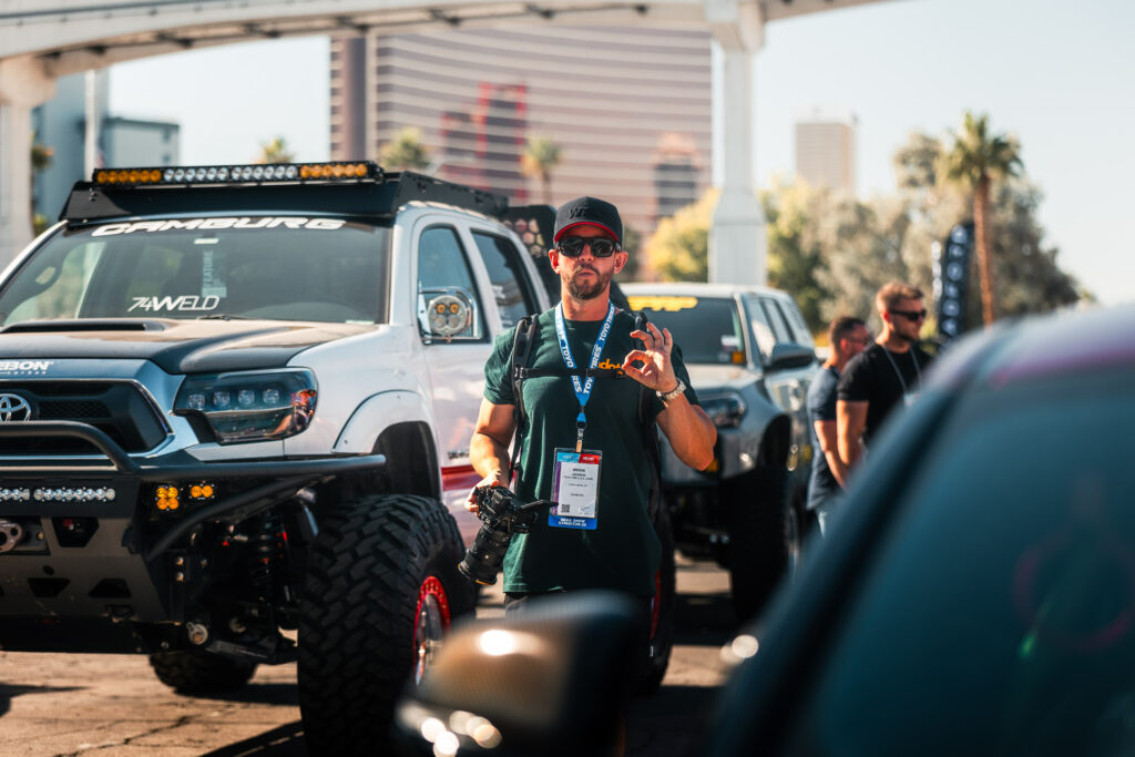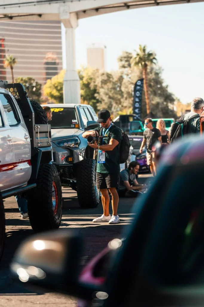 Once we got to Vegas, the pace kicked up. Everywhere you turn at SEMA, there’s something wild to capture. Tacomas, overland rigs, lifted trucks, fresh ideas, and a crowd that never stops moving. Our job was to stay in it and soak up the atmosphere without getting in the way. The images show that. Gear in hand. Moving from build to build. Finding moments between the crowds.